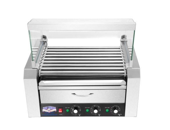 Get ready to make plump, juicy, rotisserie style ballpark hot dogs in your home, business, or backyard with our commercial grade hot dog roller. Make 24 hotdogs at once and it even includes a bun warming tray! Guaranteed to keep each dog fresh, plump, and juicy until served.